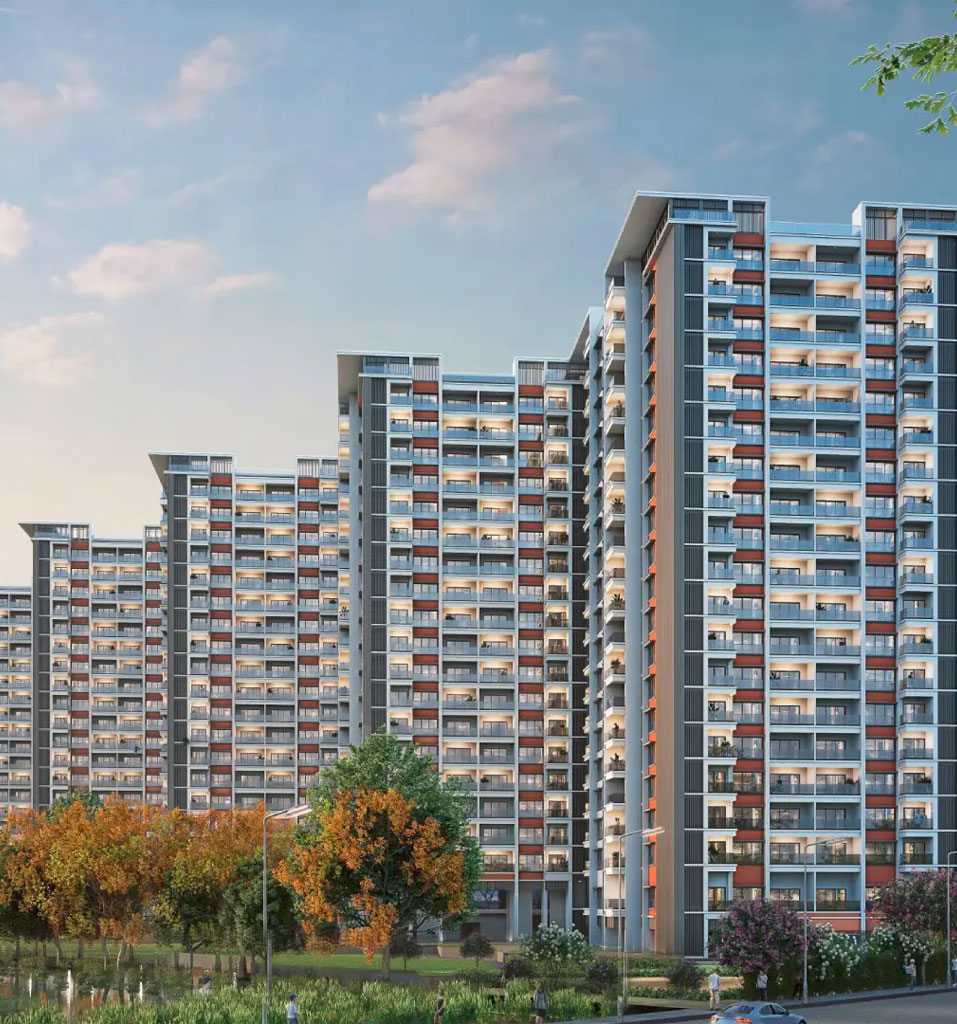 The project is spread across 8 elegant towers with 18 floors each. Spacious layouts, high-quality finishes, modular kitchens, designer bathrooms, and premium flooring ensure a blend of style and functionality. Every home is planned to maximise natural light and ventilation while offering views of landscaped gardens and township greens.